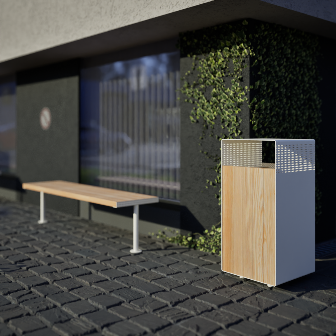 This waste bin from our Holmen line is a stylish and functional element of small urban architecture furniture created for everyday use. Its accessibility is a great encouragement to keep the environment clean, while its Scandinavian-inspired design will blend in perfectly with any urban space. The combination of high-quality larch wood and powder-coated steel elements ensures durability and long-term use. This waste bin will make a perfect addition to other elements of small urban architecture from our line.